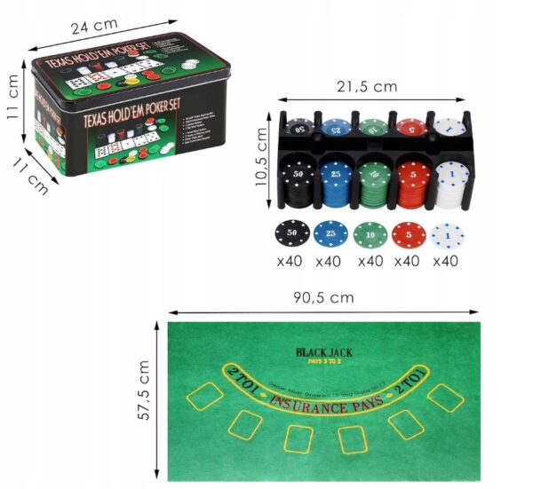 Komplet za igranje pokra je idealen za vse ljubitelje te priljubljene igre, bodisi za sproščene večere z družino in prijatelji bodisi za resnejša tekmovanja. Ta komplet prinaša vse, kar potrebujete za nepozabno igralno izkušnjo.