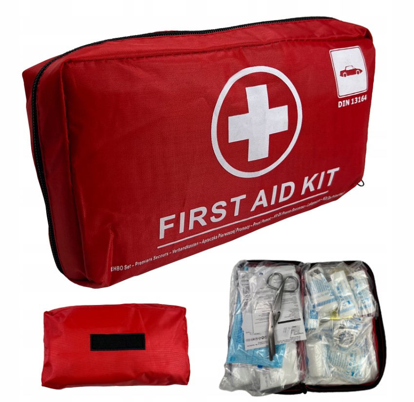 🚗 Komplet za Prvo Pomoč – 41-delni, rdeč, po standardu DIN13164