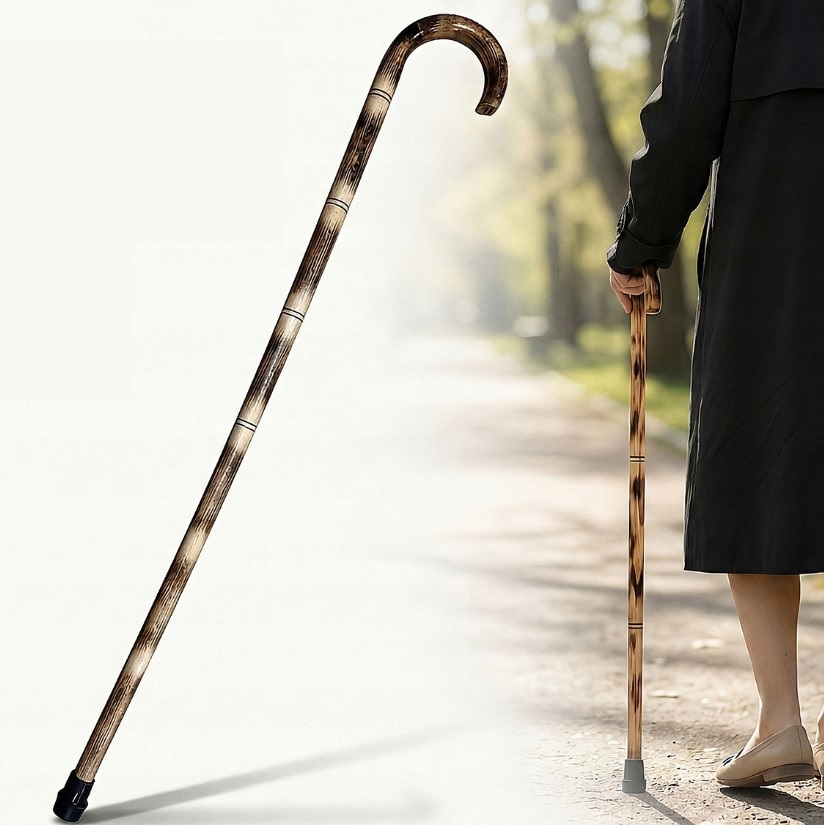 Ročaj v obliki pastirske kljuke omogoča naraven in varen oprijem, kar zmanjšuje utrujenost roke in poveča stabilnost med hojo. Zaradi svoje oblike je Lesena Palica za Hojo enostavna za odlaganje in vodenje, kar je še posebej pomembno pri vsakodnevni uporabi.