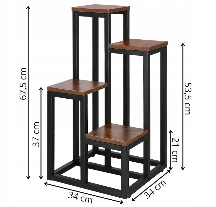 Če želite ustvariti urejen, eleganten in naraven kotiček v svojem domu, je Okrasno Stojalo za Cvetlice popolna izbira. S svojo večnivojsko zasnovo, kakovostnimi materiali in modernim loft videzom bo postalo nepogrešljiv dekorativni element vašega prostora.