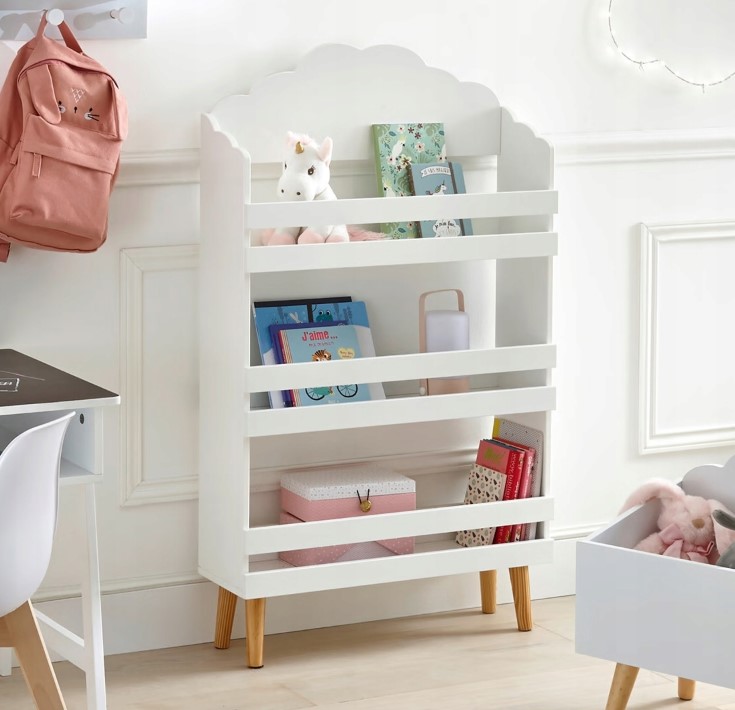 - Velika kapaciteta: Otroško Stojalo za Knjige "Cloud" ima tri prostorne police, ki omogočajo shranjevanje večje količine knjig, igrač in družabnih iger.
