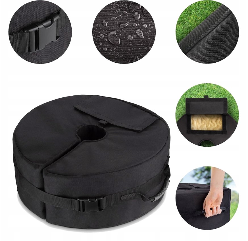 Podstavek za senčnik je primeren za vse vrste vrtnih senčnikov – tako tiste s križnim podstavkom kot klasične modele. ✅ Po polnjenju s peskom doseže teža približno 40 kg, kar zagotavlja izjemno stabilnost tudi ob vetrovnem vremenu. ✅ Izdelek je opremljen z dvema ergonomskima ročajema, ki omogočata enostavno prenašanje in postavitev. ✅ Podstavek za senčnik ima večjo odprtino za polnjenje, kar olajša dodajanje peska brez razsipanja. ✅ Trpežen PVC zapiralni sistem, močan plastični zaponka in dodatni Velcro trak poskrbijo za varno zapiranje. ✅ Zložljiva zasnova omogoča enostavno shranjevanje po sezoni – izdelek se hitro razstavi in zloži. ✅ UV zaščita in trojno šivanje zagotavljata odpornost na bledenje in mehanske poškodbe.