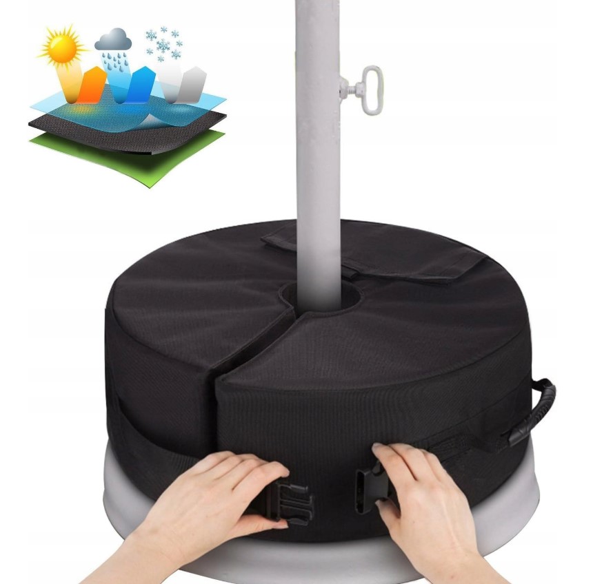 Podstavek za senčnik je nepogrešljiv pripomoček za vse, ki želijo svoj vrtni senčnik varno in stabilno pritrditi na izbrano mesto. Ta inovativna obtežitev je izdelana iz kakovostnega 900D poliestra, odpornega na vremenske vplive, UV žarke in trganje, kar zagotavlja dolgo življenjsko dobo in zanesljivo uporabo v vseh letnih časih.