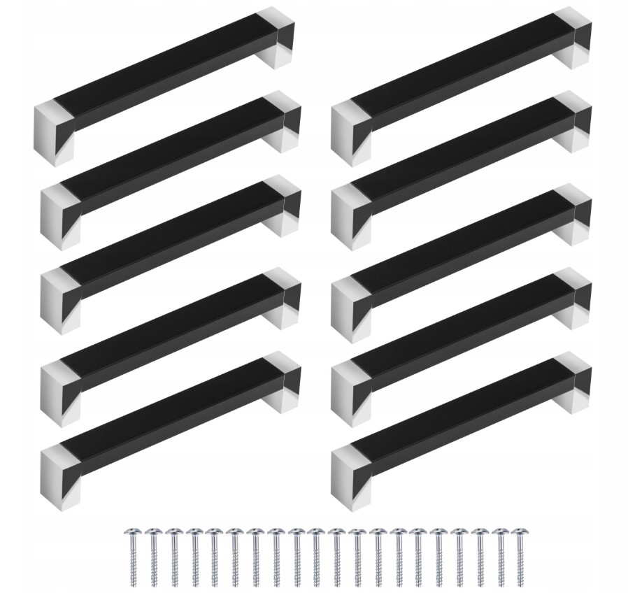 Popestrite videz svojega pohištva z elegantnim kompletom Ročaji za Omarice x10, ki združuje sodoben dizajn, praktičnost in vzdržljivost. Komplet vsebuje 10 kakovostnih ročajev v črni mat barvi z bleščečimi kromiranimi zaključki, ki ustvarijo privlačen kontrast in se odlično podajo tako v moderno kot klasično notranjo opremo.
