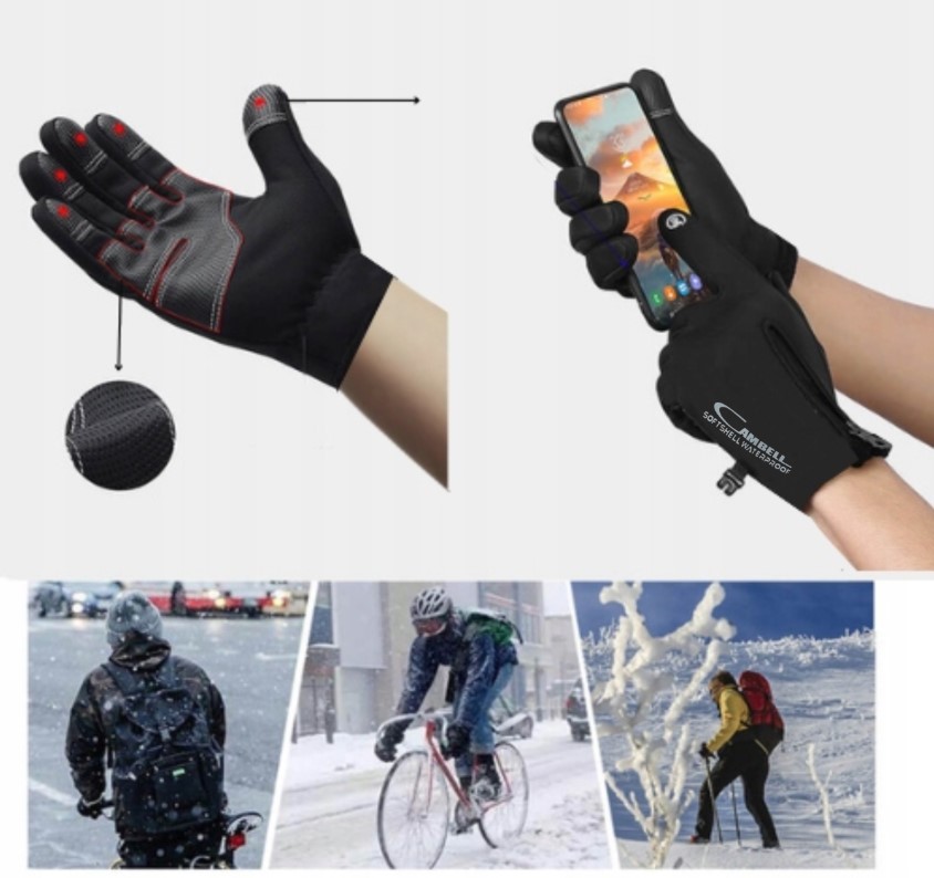 Rokavice so izdelane iz 3‑slojnega softshell materiala, ki vključuje: