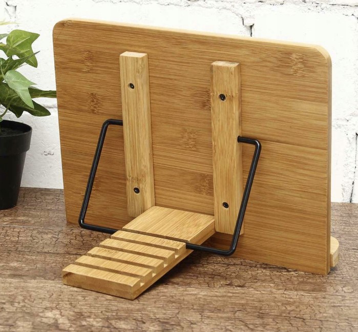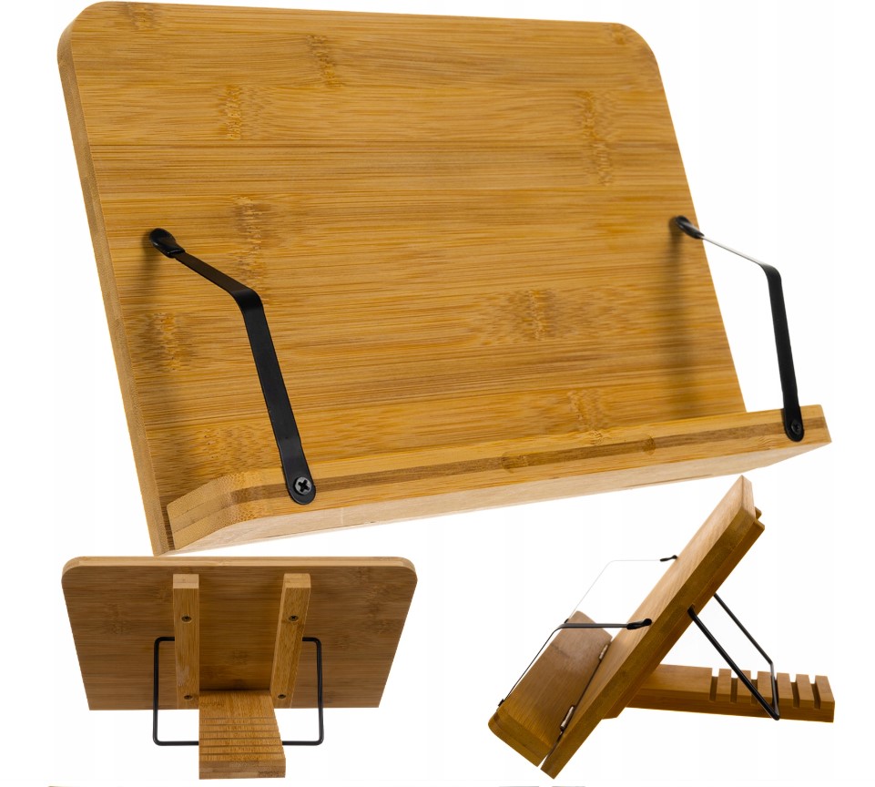 • Trdna konstrukcija: kombinacija bambusa in kovinskih ročic omogoča stabilnost tudi pri večjih in težjih knjigah.