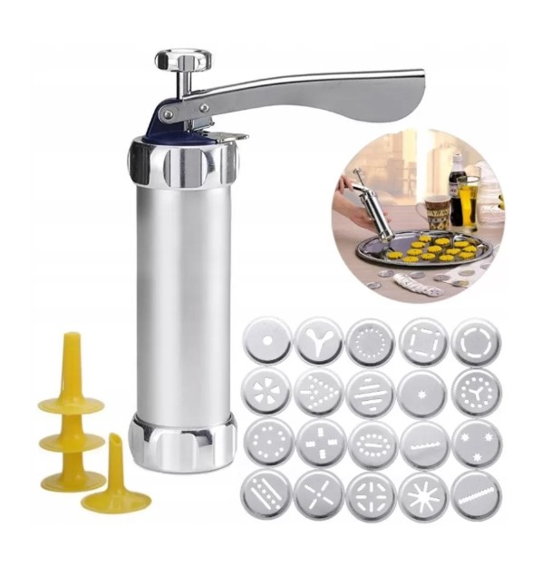 Iščete popolno rešitev za peko in dekoracijo domačih sladic? Predstavljamo vam Stroj za Piškote, praktičen in kakovosten pripomoček, ki bo navdušil vsakega ljubitelja peke že ob prvi uporabi. Ta 24-delni set združuje funkcionalnost, vzdržljivost in enostavno uporabo, zato je nepogrešljiv v vsaki kuhinji.