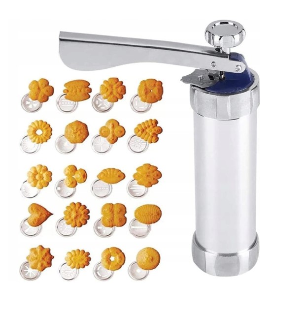 - V kompletu prejmete kar 20 različnih nastavkov za oblikovanje piškotov in 4 posebne dekorativne nastavke, s katerimi bodo vaše sladice videti profesionalno.